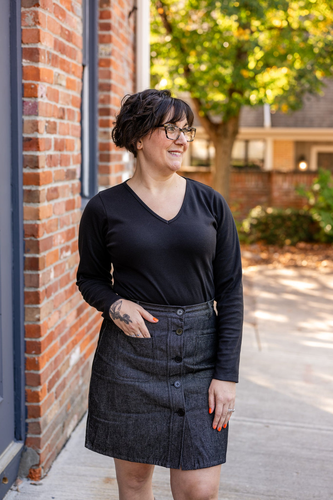 Button-Front Denim Skirt