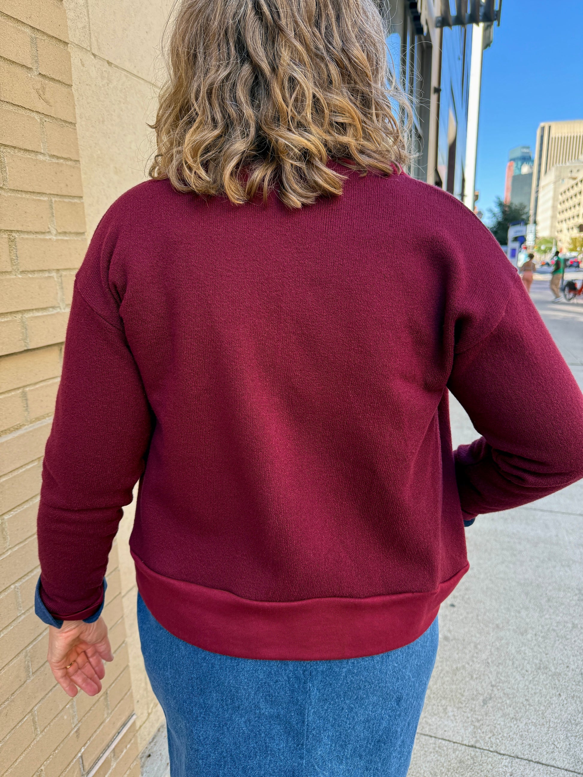 Stay cozy and stylish with this versatile button-front cardigan in rich Bordeaux, crafted from sustainable lightweight fleece cotton mixed surplus fabrics. Perfect for layering year-round.